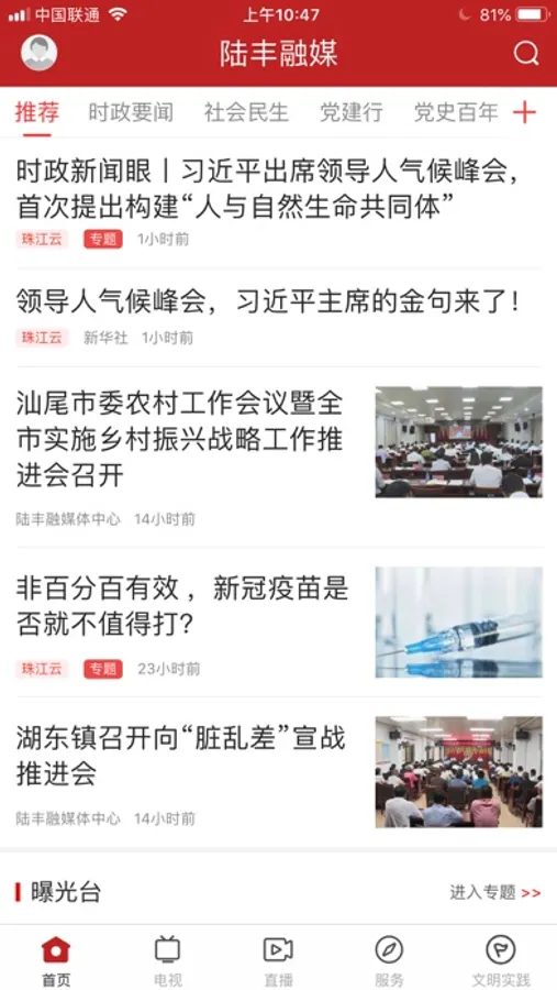 陆丰融媒APP主要报道陆丰市政府中心工作、关注民生、社会热点问题,发挥舆论监督,维护社会稳定的主流媒体作用。