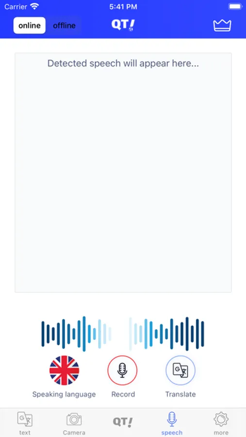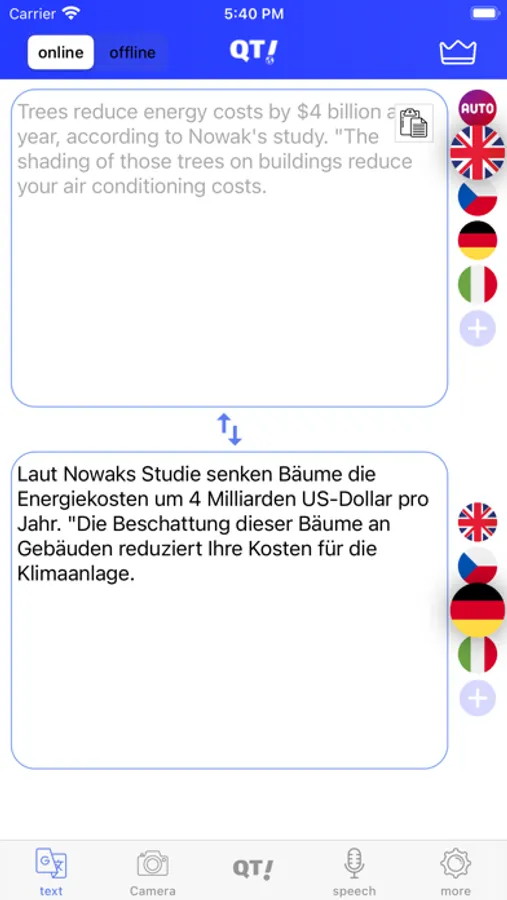 QTranslate (QT) is a Lightweight translator for iOS. It is a simple and intuitive translation app that helps you translate text to text, translate text in photos and translate your chats in social media apps.