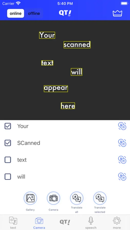 Scan or upload images and handwritings to translate