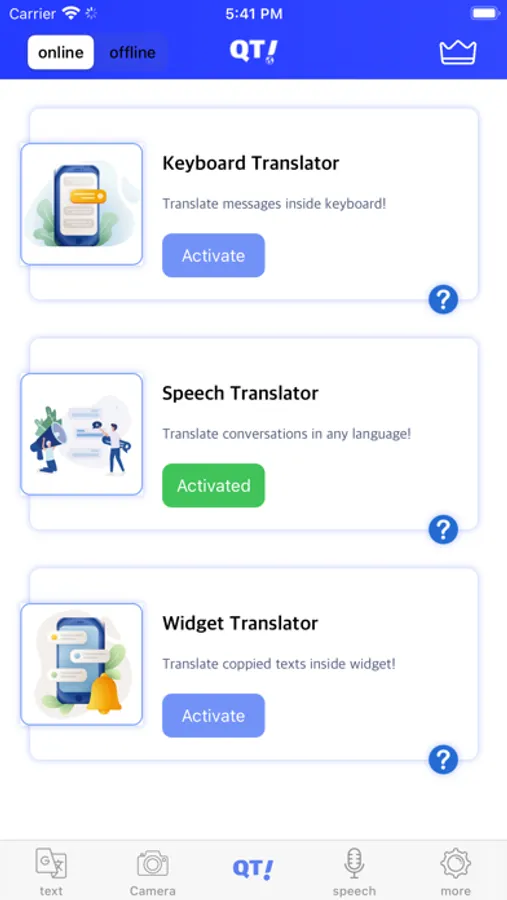 Instant translations with the all-new QTranslate Keyboard: Translate text in any app instantly and stay in touch with your friends, family, and colleagues all over the world.