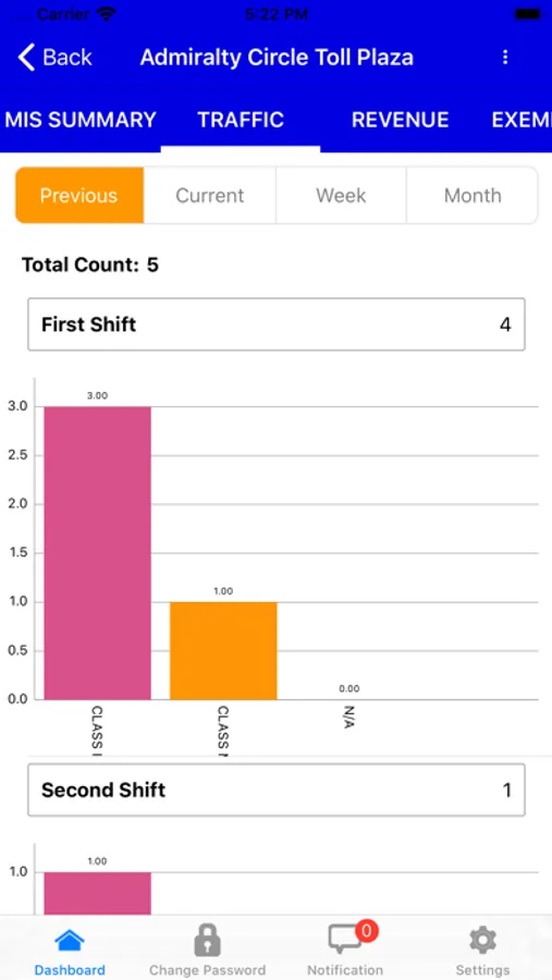 TMS concessionaires can see their plaza’s real time traffic, financial, violation, exemption, AVC and its trend analysis. Notification for shift summary are generated in end of shift.