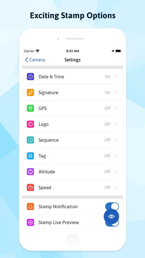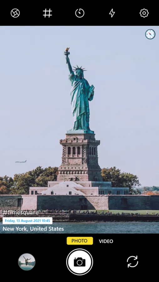 This Timestamp camera with Location App has user-friendly built-in custom camera settings comprising Ratio, White balance, Grid, Timer, Focus, Compass, Flash mode & Mirror front camera.