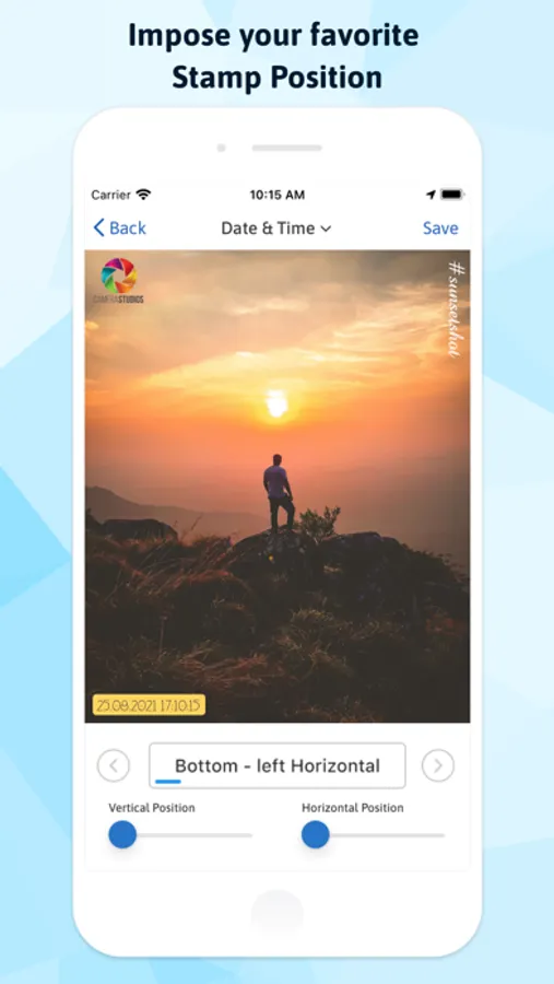 • Auto Add date timestamp - Easily add datetime stamp to the photos.