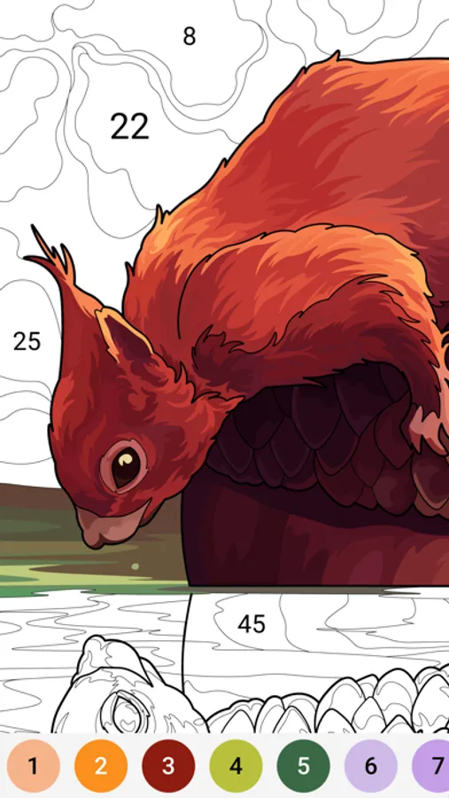 In all the pictures you will see numbers, each of them corresponds to a color. Use hints if you cannot find and paint over a tiny cell. Color the drawing by the numbers from the palette and create a colorful picture that can be shared with friends.