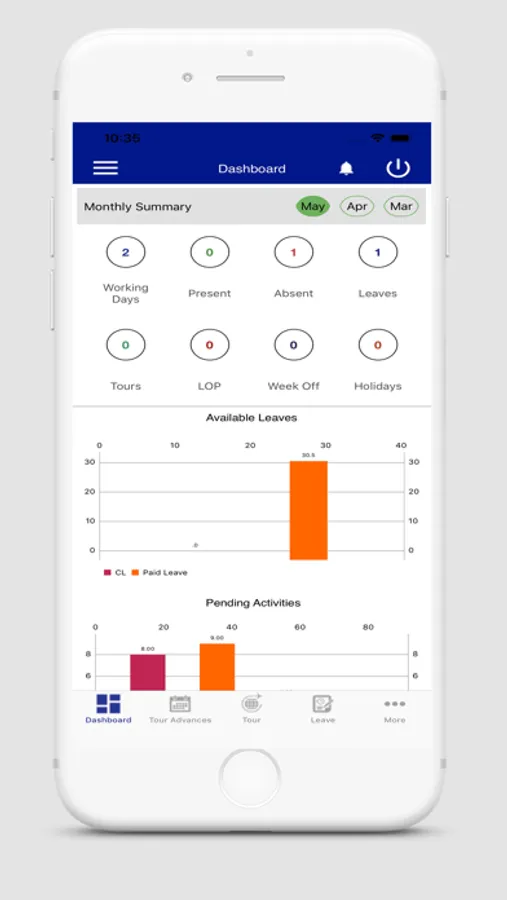 - Tour management, employee can apply tour/on-duty and check their tour/on-duty status. And project manager can see all the employees' tours/on-duty to approve or reject.