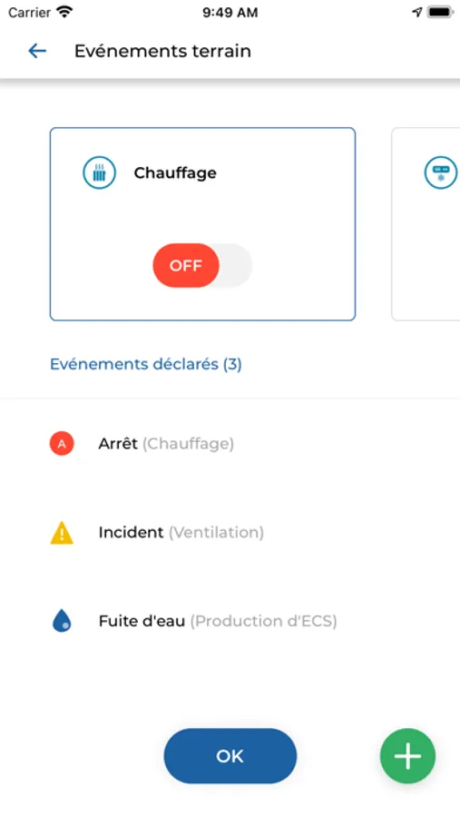 • Déclarez la mise en marche ou l'arrêt de certains équipements liés à la valorisation de vos engagements de performance énergétique (chauffage, climatisation…)