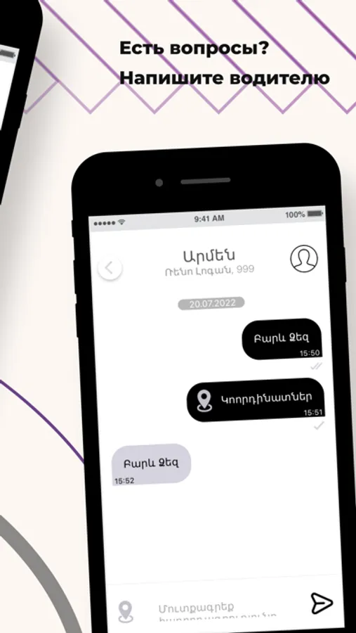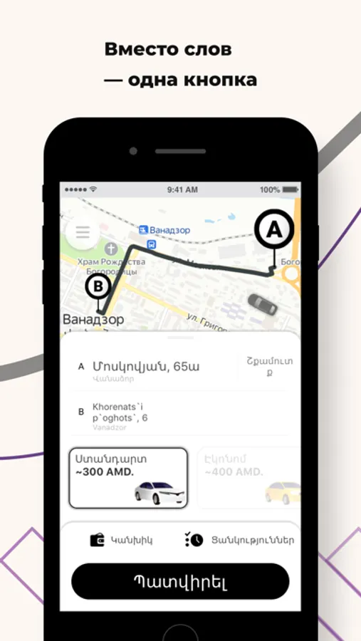 Закажите Arpi Taxi в городах Ереван, Ванадзор, Спитак, Степанаван, Алаверди, Ташир, Эчмиадзин, Гюмри через приложение. Это в 3 раза быстрее, чем по телефону! Между желанием доехать до нужного места и поиском автомобиля — пара секунд.