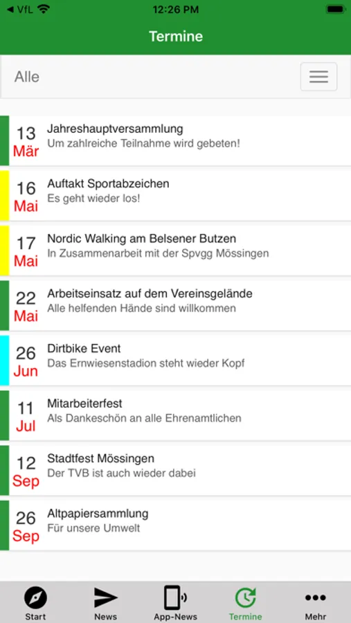 • Alle Termine, auch zur Übernahme in Deinen Kalender oder in die Navigation