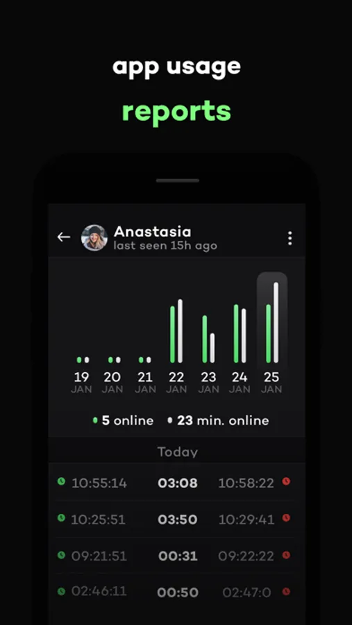 Analyze how long your family and kids spend time on social apps on their smartphone with WaRadar. Check out the time spent with our user-friendly interface and weekly detailed reports.