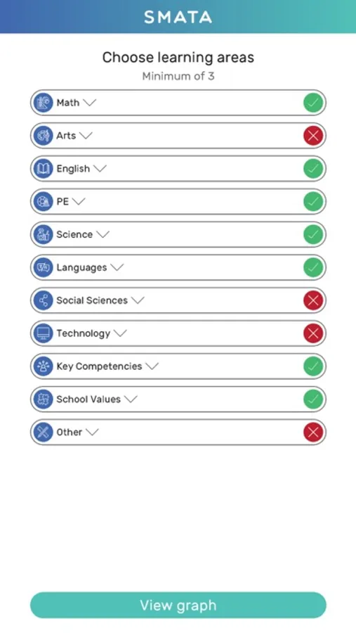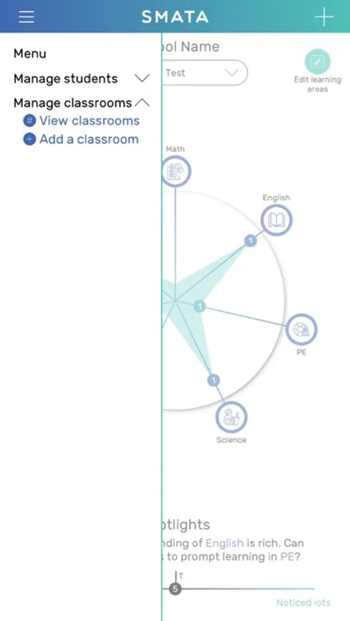Teachers decide the learning areas they want to keep track of. Smata graphs the captured small data to provide a visual representation of the learning teachers are noticing and its degree of richness.