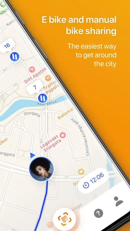 Rent a bike by scanning the QR code on the lock or on the charging station. The cost of
