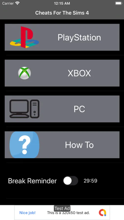 Using this app will make it easier for you to find the cheats for The Sims 4. The app also features a break reminder that will remind you to have a break every 30 minutes by using local notifications and a spoken prompt.The break reminder will also continue working in the background which means you will be reminded to have a break no matter what app you are using.