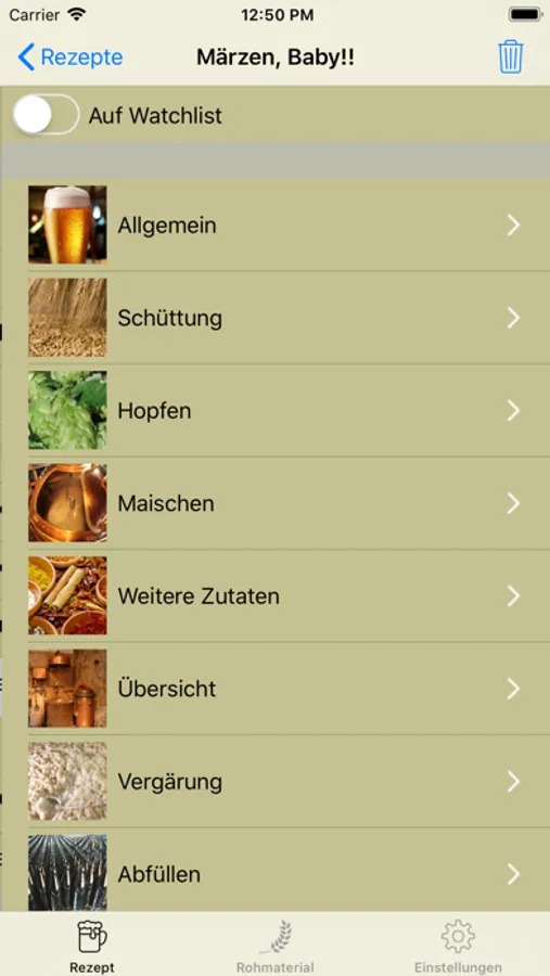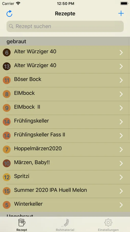 - Überprüfen der Bestandsmengen für Malze, Hopfen und Hefe in der Rezeptverwaltung