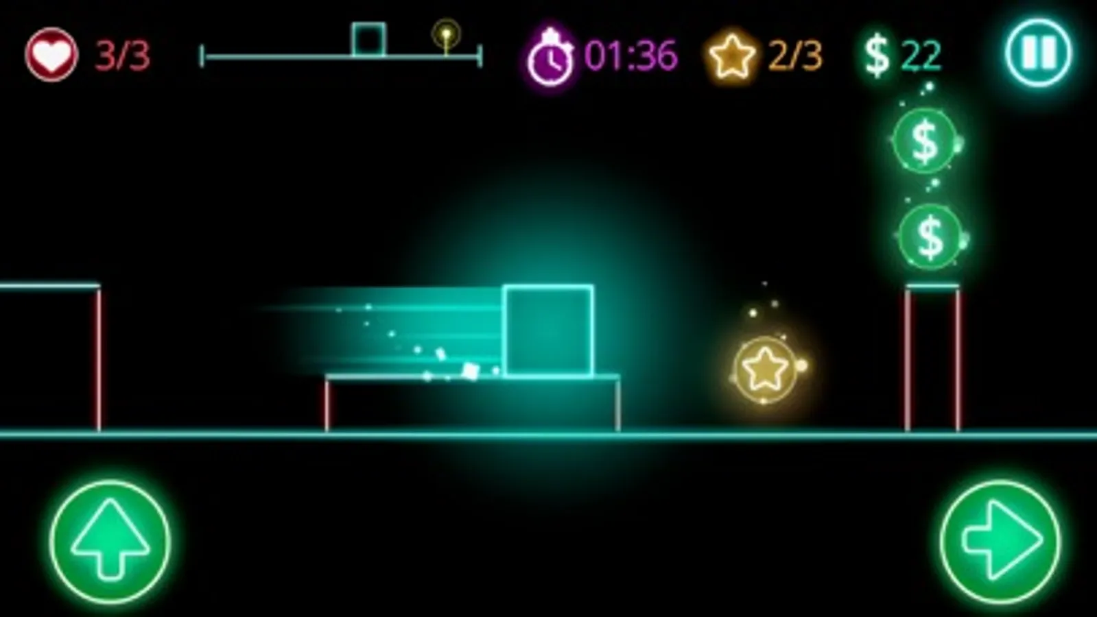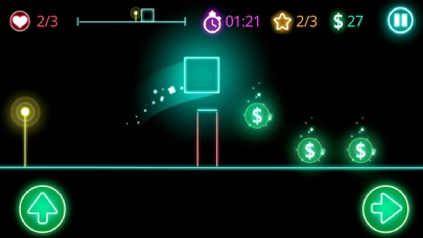 Make your neon square jump through geometric obstacles in this platformer game.