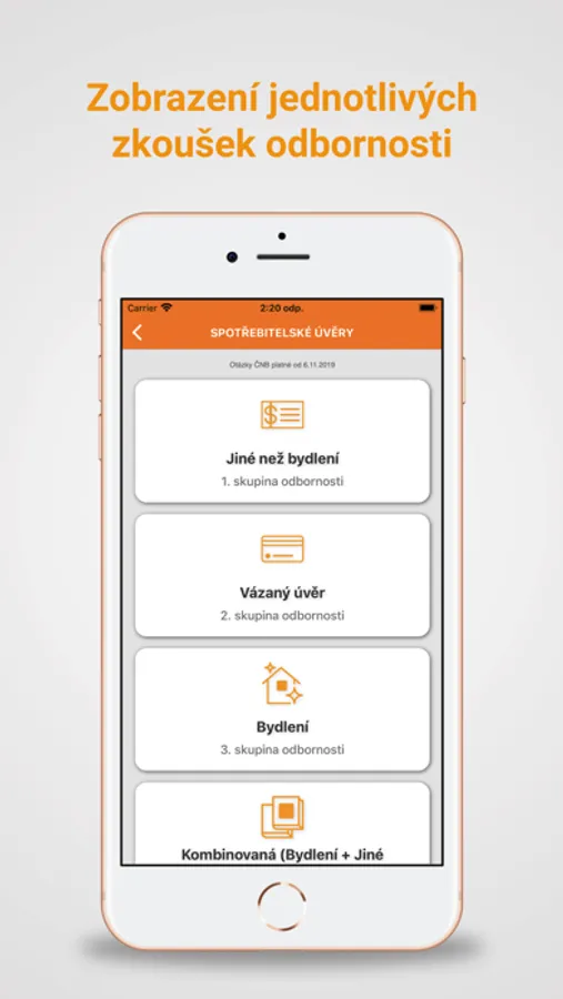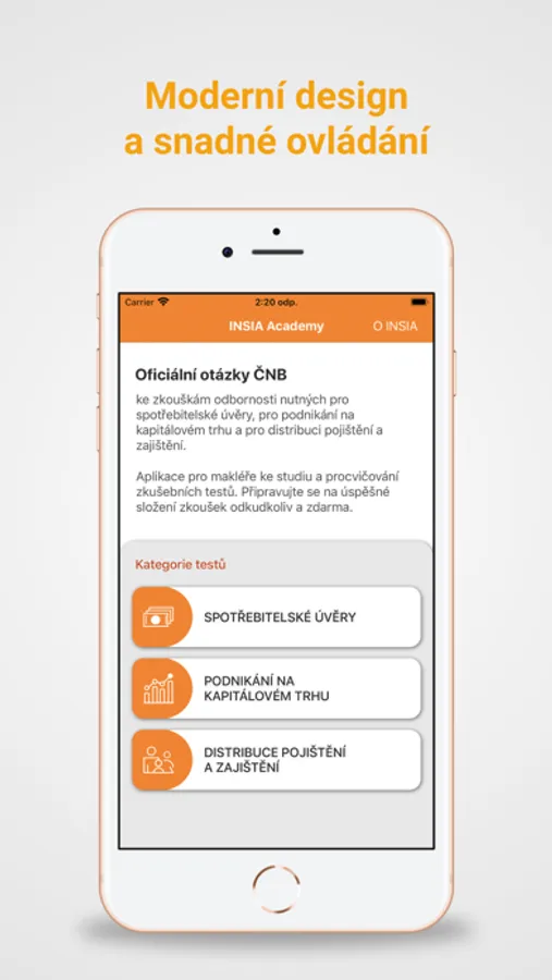 Procvičujte si ZDARMA a neomezeně zkušební testy všech skupin odbornosti spotřebitelského úvěru i podnikání na kapitálovém trhu. Nově aplikace obsahuje oficiální otázky ke zkouškám odbornosti nutných pro distribuci pojištění a zajištění včetně zkušebních testů.