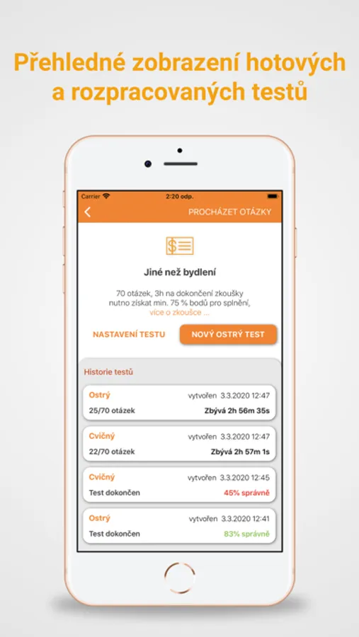 - ukládání průběhu testu (o test již nepřijdete) + historie vašich testů