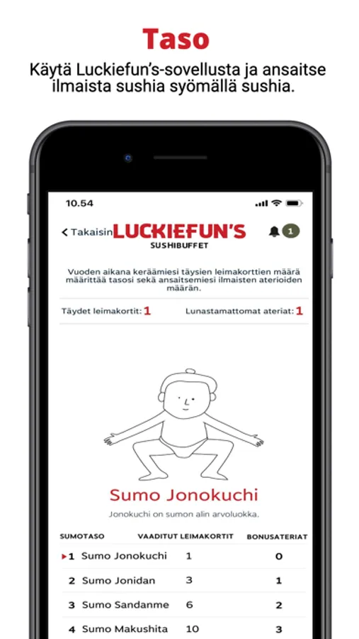 Once you have completed your first stamp pass, your levels will be activated and you’ll enter the heavy-weight world of professional sumo wrestling – or in this case; start earning even more free meals.