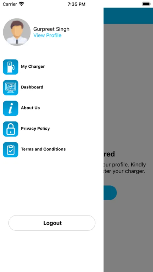 • View Registered Charger - Once logged In, user can view his installed charger with live status of the charger.