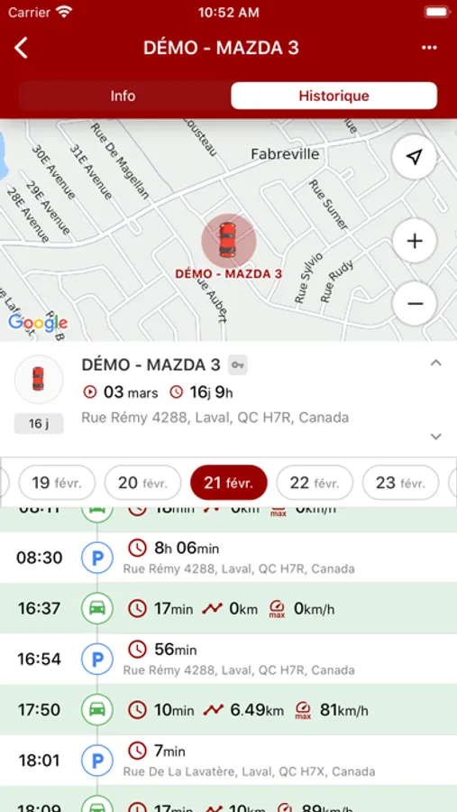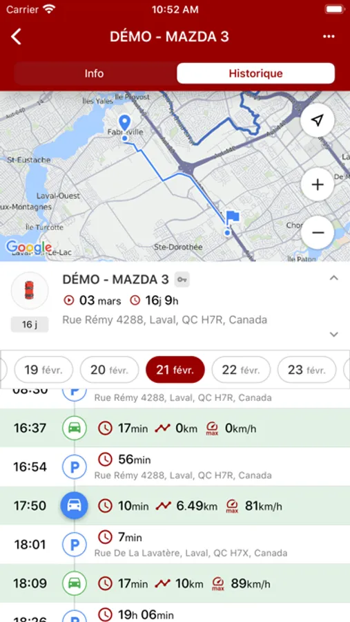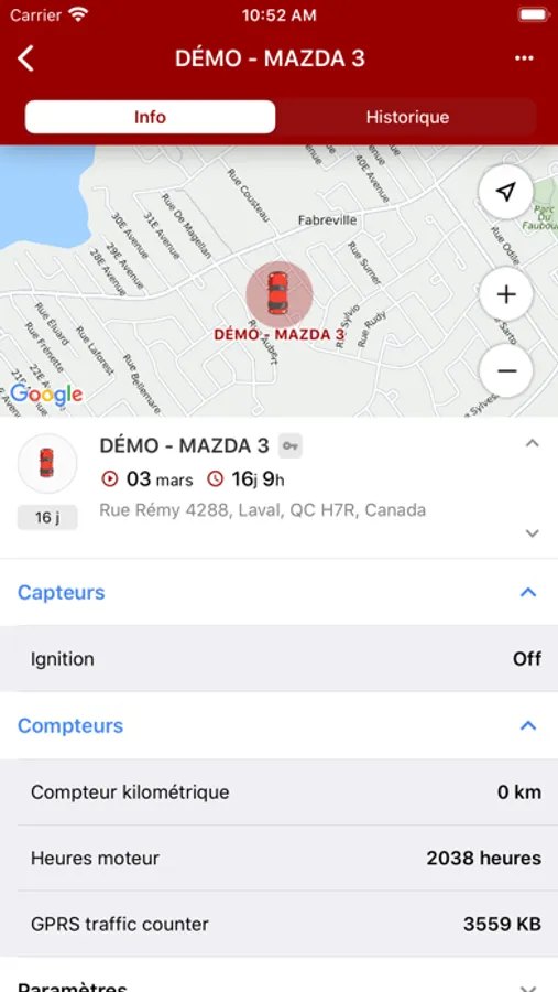 Conserver à porter de main les informations importantes sur les activités quotidiennes ; suivi du déplacement en temps réel, consulter les rapports, visualiser et créer des barrières virtuelles, créer et afficher des notifications et effectuer le suivi de différents capteurs.