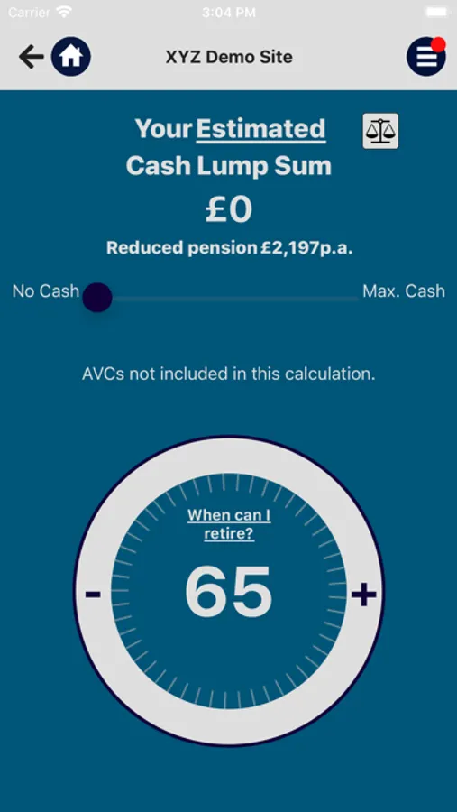 • View your pension and cash lump sum from age 55-75.