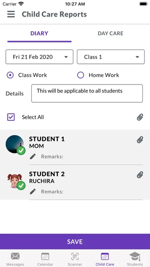 It acts as a digital diary, with rich communication features and facilities to share messages, files, images and videos. It enables easy chat between the parents and the teachers of the school. The school not necessarily has to be formal schools but also can be tuition classes or hobby classes for the child.