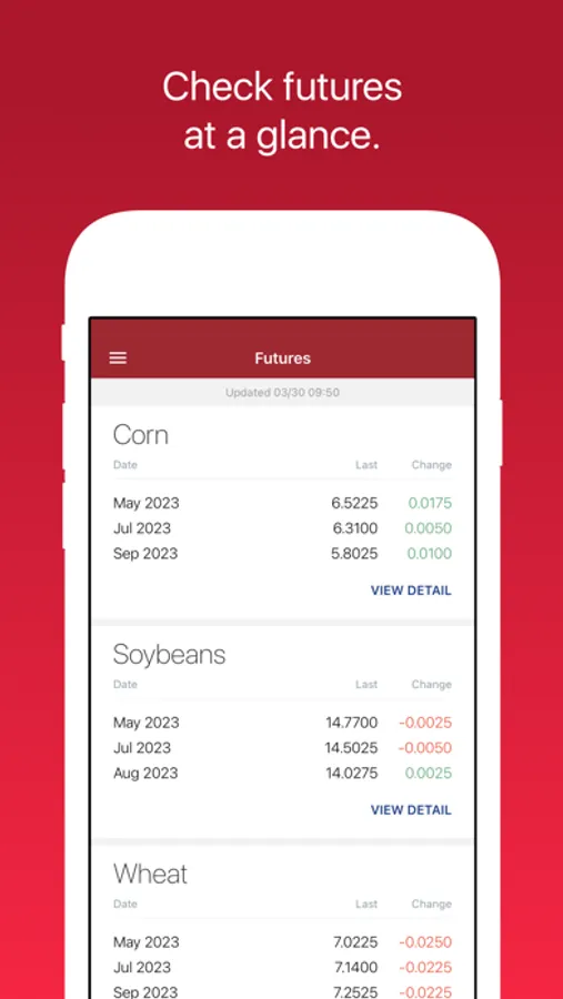 Futures: See Grains, Feed, Livestock, and Ethanol futures listed in order of your preference