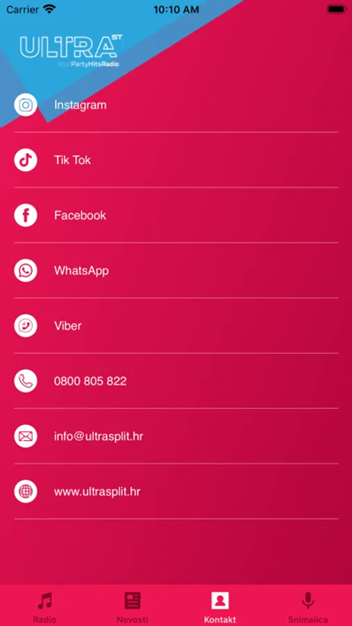 Kroz aplikaciju nas možeš kontaktirati na pet različitih načina (Whatsapp, Viber, telefon, mail ili snimanjem glasovne poruke).