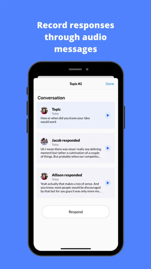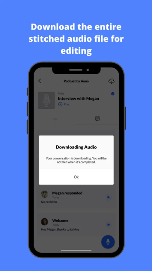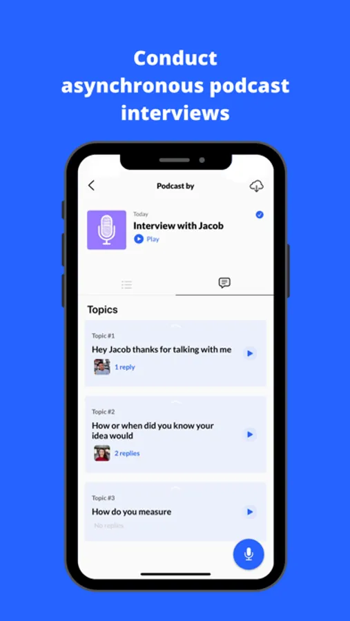 At the end of the interview, the software stitches all the recordings together to mimic a live conversation experience. Asynchronous for you, live for your listeners.