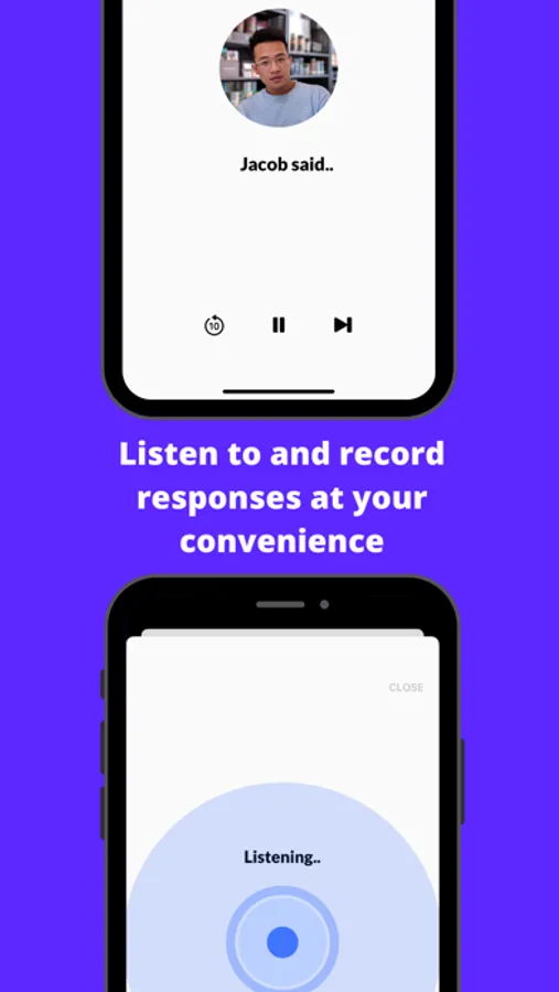 By recording the interview asynchronously, or “not-live”, you don't have to worry about calendar conflicts that come with traditional interviews. It respects everyone's time and also allows the recipient time to gather their thoughts and come back with a thoughtful, intelligent reply.