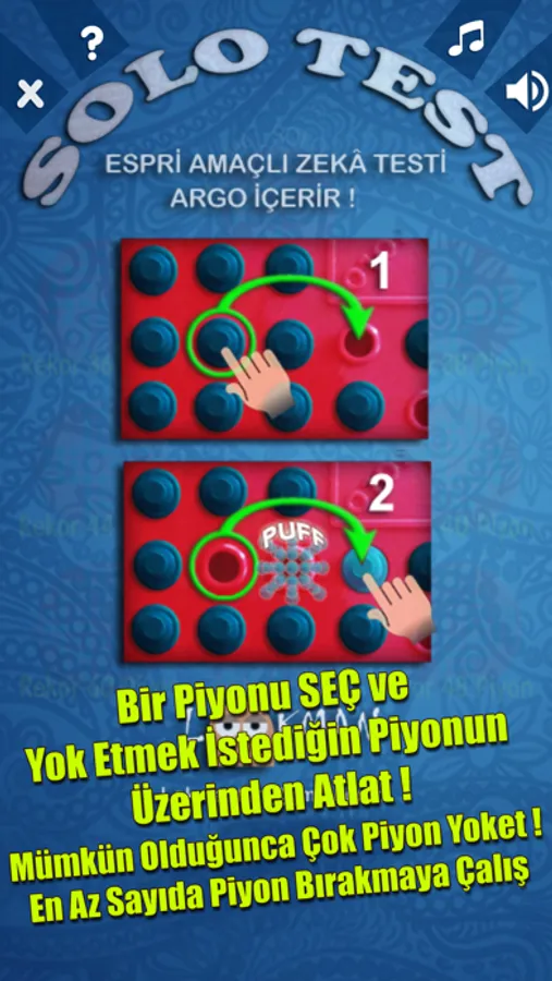 Bir Piyon seçip, yok etmek istediğiniz piyonun üzerinden atlatıyorsunuz. Bu şekilde tek tek piyonları yok edip en az sayıda piyon bırakmaya çalışıyorsunuz.