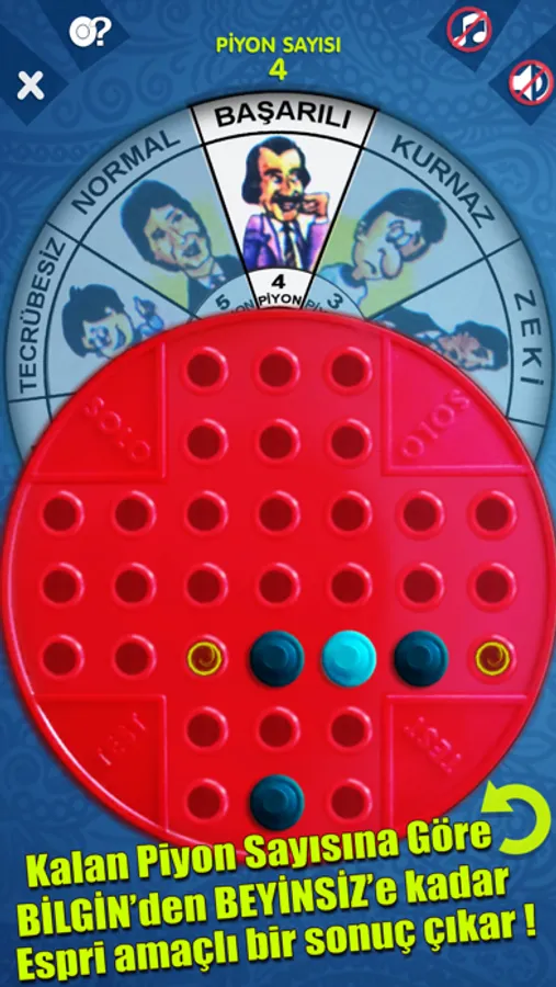 Oyunun sonunda kalan piyon sayısına göre BİLGİN, ZEKİ, KURNAZ, BAŞARILI, NORMAL, TECRÜBESİZ, APTAL, GERİZEKALI yada BEYİNSİZ şeklinde 9 farklı sonuç çıkıyor. Bunlar tamamen Klasik Solo Test oyunundan alıntı ve espri amaçlıdır. Gerçek durumu yansıtmaz.