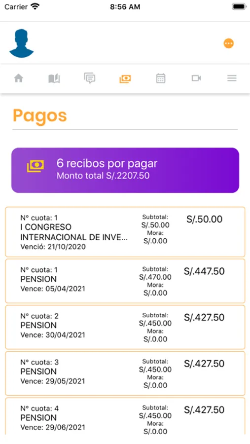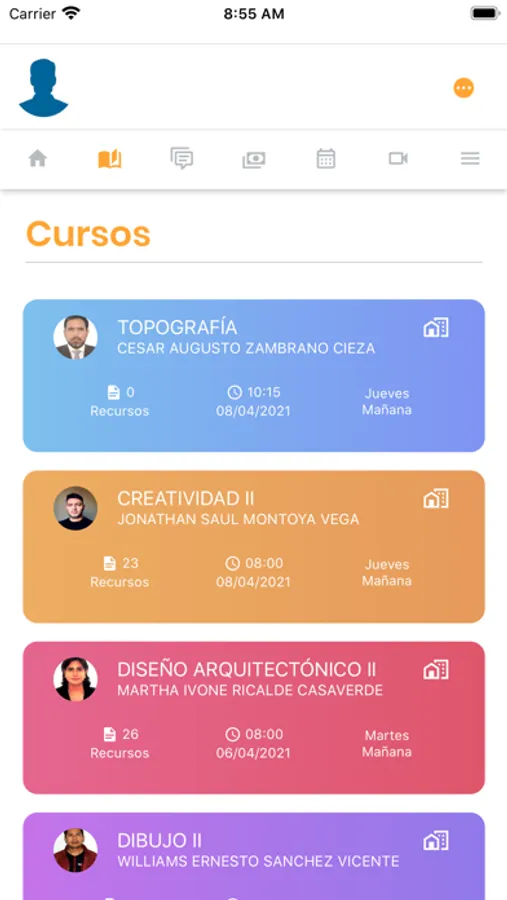 - Cursos matriculados: podrás visualizar el material de lectura, detalle de notas.
