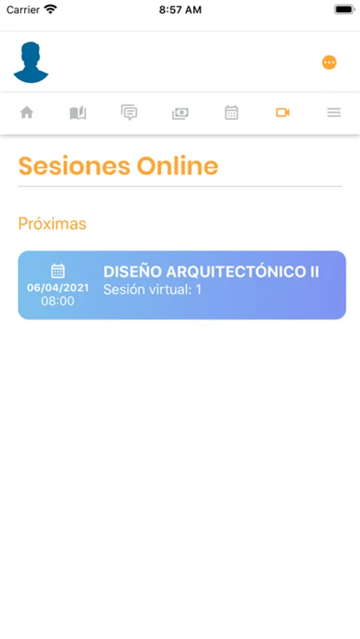 - Horario actual: podrás visualizar el horario y ambiente de tus cursos actuales.
