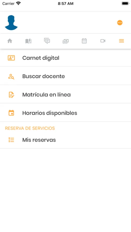 - Reservar servicios: podrás realizar la reserva de los servicios que ofrece la universidad (salas netflix, libros, juegos en línea, entre otros).