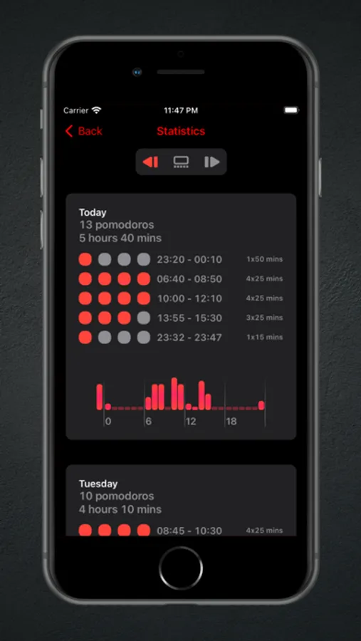 It is flexible because it does not force you into intervals with second precision. It just notifies you about the interval end and you decide when do you want to continue with the next interval. This is more realistic in a real world scenario as you might need an extra minute or so to complete your current work before you want to go for a break. It is a similar experience as a traditional analog pomodoro timer. Our statistics module can figure out what counts as a set or break, so you still get the same insight and discipline for your focused work.