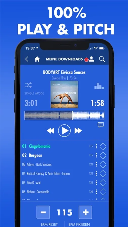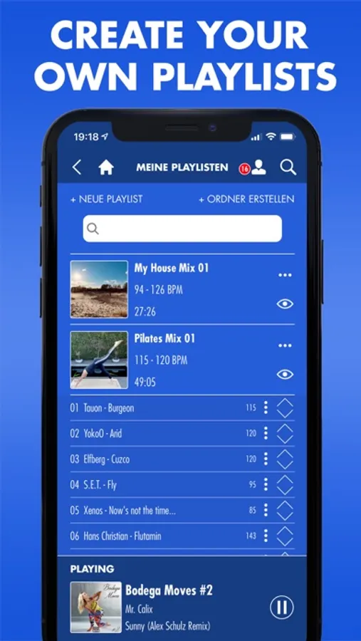 The WOW! Music Player is the must-have App for group fitness trainers. You can easily download all purchases from the WOW! Shop directly to your phone and play them immediately without gaps between the tracks. Of course you can use your titles from your iTunes library to incldue them in your own playlists.