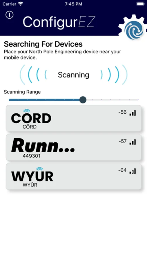 The ConfigurEZ app is the central location for supporting Bluetooth enabled products produced by North Pole Engineering. ConfigurEZ currently supports connecting to our WYÛR, CÔRD, and Runn products in addition to GEM enabled fitness equipment. ConfigurEZ supports both device configuration and firmware updates.