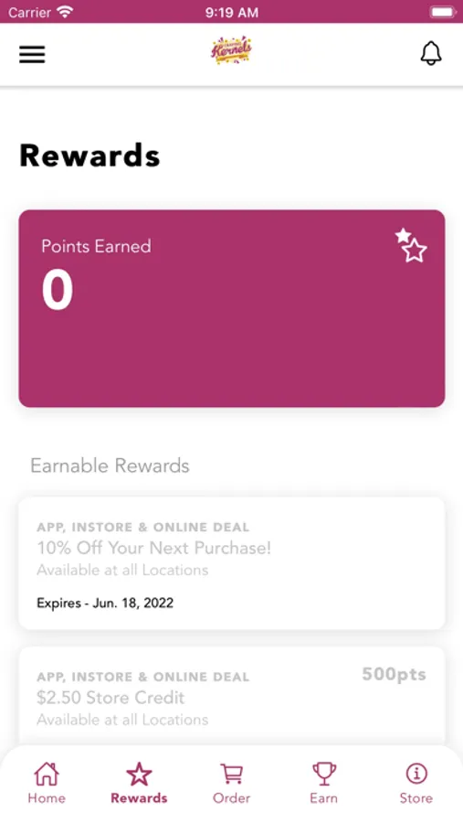 Craving Kernels Rewards App - Earn and track your rewards at participating stores!