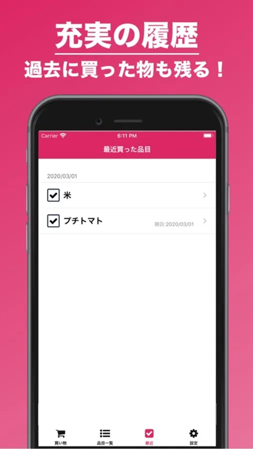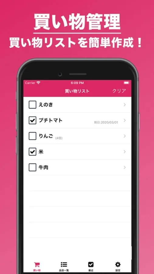 買い物管理は、簡単に毎日の買い物リストを作成することができるアプリです。サクサクと入力して、買い忘れや買いすぎを防止しましょう!