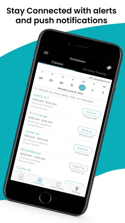 View, search and reserve group exercise classes, small group training, tennis courts, personal training and more.
