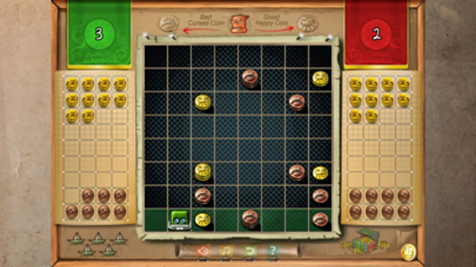 - The game comes to an end when either player cannot successfully move the chip onto a square that has coins on it.
