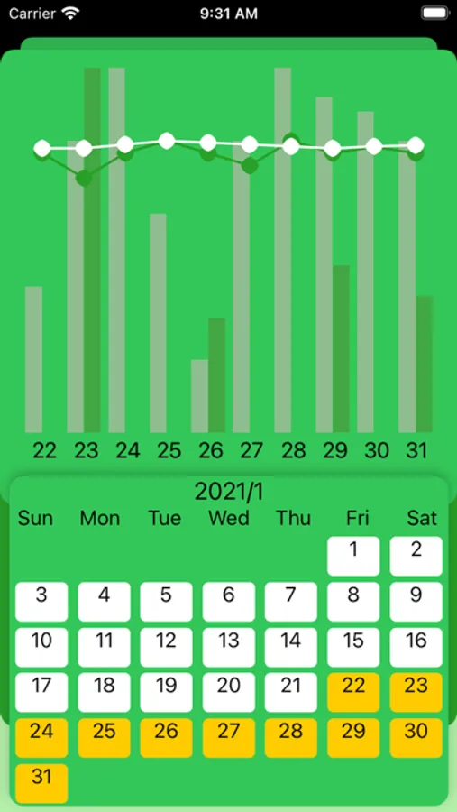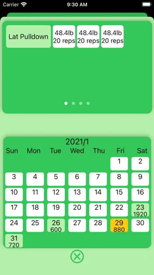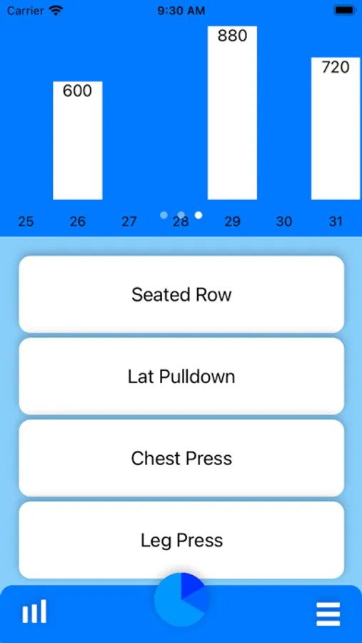 Show the total weight and reps each week, and immediately find out which day you work hardest.