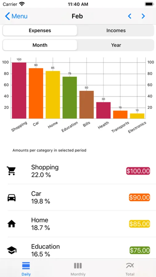 Keep track of the expenses you spend day by day and check them very easily. With "My expense monitor" you can easily memorize all the movements related to your savings and group them in time intervals, managing the categories related to income and expenses in a personalized way. In addition you can view graphs and statistics, to understand how and when you spend your money. All this in an intuitive and pleasant graphic.