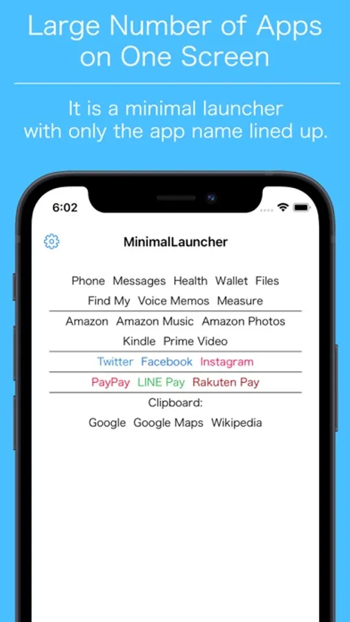 MinimalLauncher only displays the app name, so a large number of apps can be displayed on a single screen.