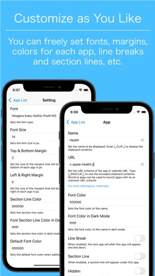 ・The color of the application name can be freely set (separate colors can be set for light mode and dark mode).