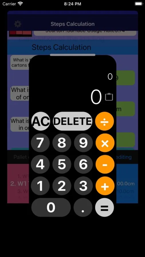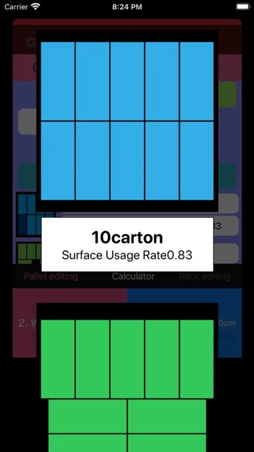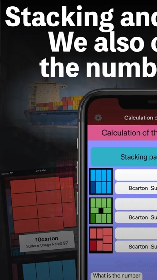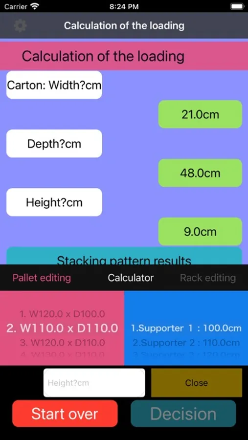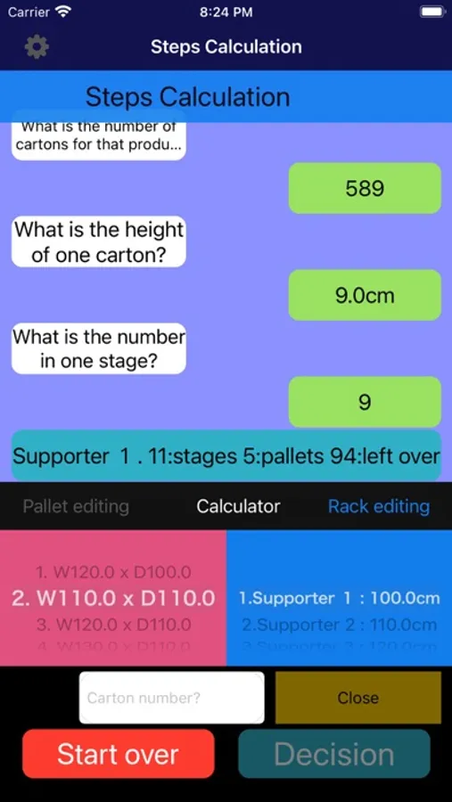 The type of support and ness, the number of stages in one pallet, the number of true pallets and the number of extra cartons can be calculated instantly by deciding how to place one stage.