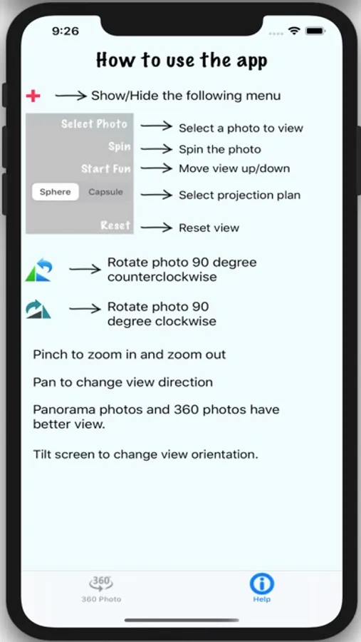 This app is a 360 photo viewer that displays your photos, particularly pano and 360-degree photos, in 3D on your screen. You can pan, pinch, auto-rotate the photo you choose from your photo library.