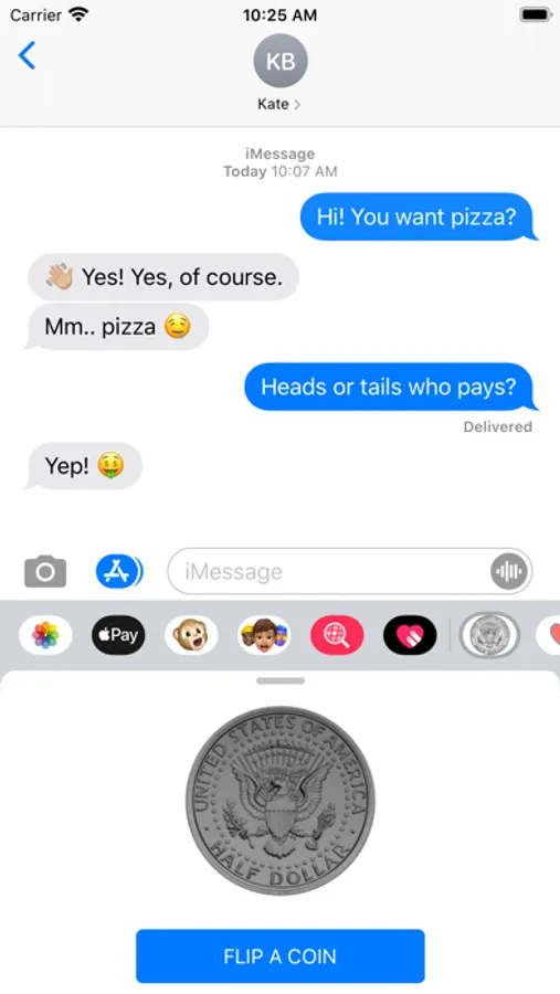 Do not know who will pay for dinner in a restaurant or pizza? Luck will solve this problem for you. Toss a coin and send the result to iMessage.