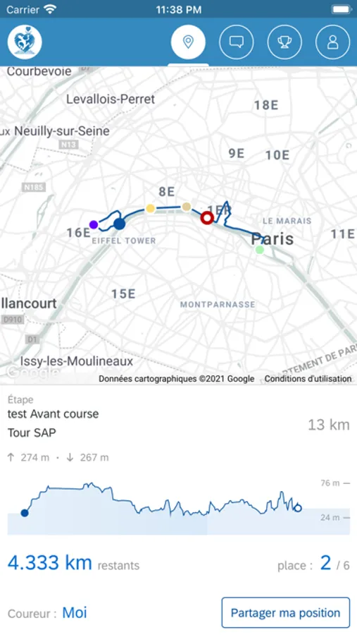 Grâce à cette application, les coureurs peuvent accéder au classement, partager leur position et échanger avec leurs supporters.