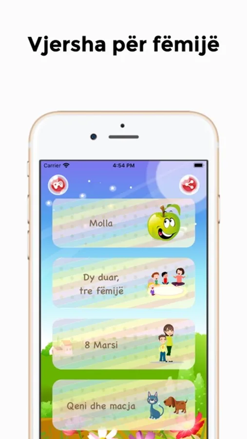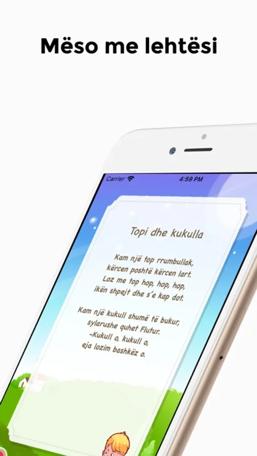 Në këtë aplikacion mund të gjeni shumë më shumë se 60 vjersha. Vjershat janë me ilustrime dhe zërim që e bëjnë aplikacionin shumë të dobishëm për përdoruesit dhe njëkohësisht shumë më të kapshëm për mësim. Mëso duke lozur është qëllimi i këtij aplikacioni që shërben kryesisht për të memorizuar vjersha, dhe elemente tjera të përditshmërisë.